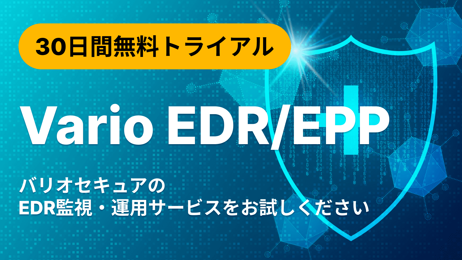 EDR(エンドポイントセキュリティ)をご検討中のお客様へ、30日間の無料トライアルをご提供しております。EDR製品のご選定や導入後の運用方法の確認、懸念点の解消などにお役立てください。トライアルお申込みにはフォーム各項目に入力の上、送信をお願いします。※メールアドレスのお間違いにご注意下さい。Vario EDR/EPPのサービス内容はこちらをご確認ください。▶ https://solutions.variosecure.net/edr-epp<無料トライアルでの確認例>